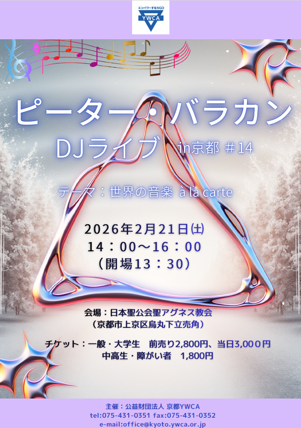 ■場 所: 日本聖公会聖アグネス教会(地下鉄丸太町駅より徒歩3分)